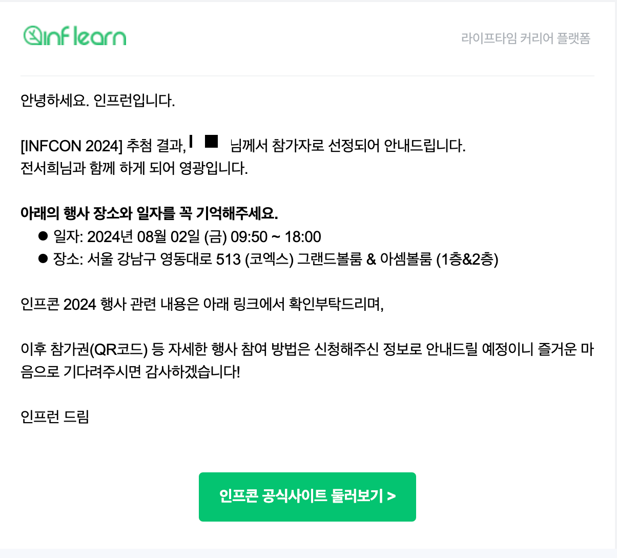 🌱 꿈에 그리던 인프콘 당첨