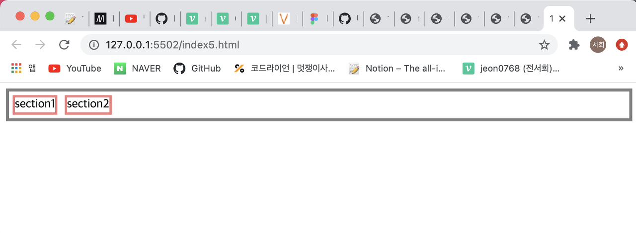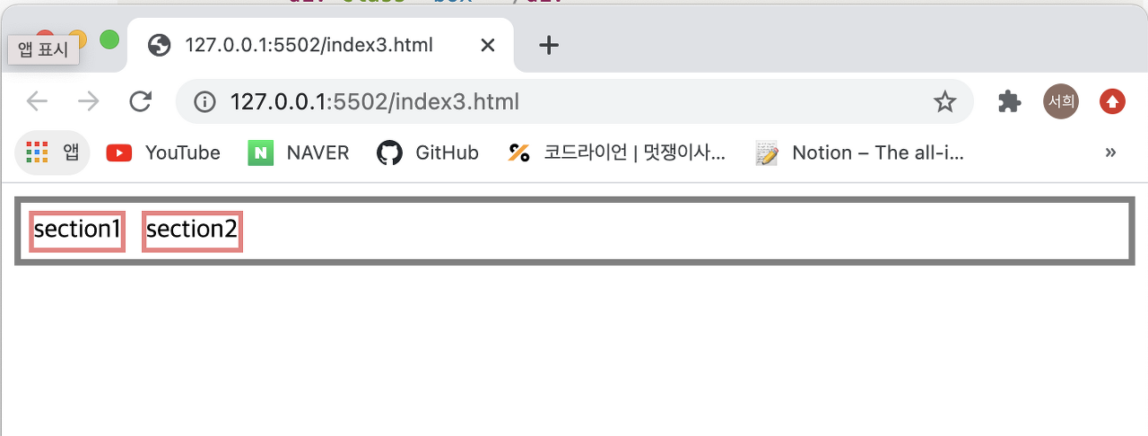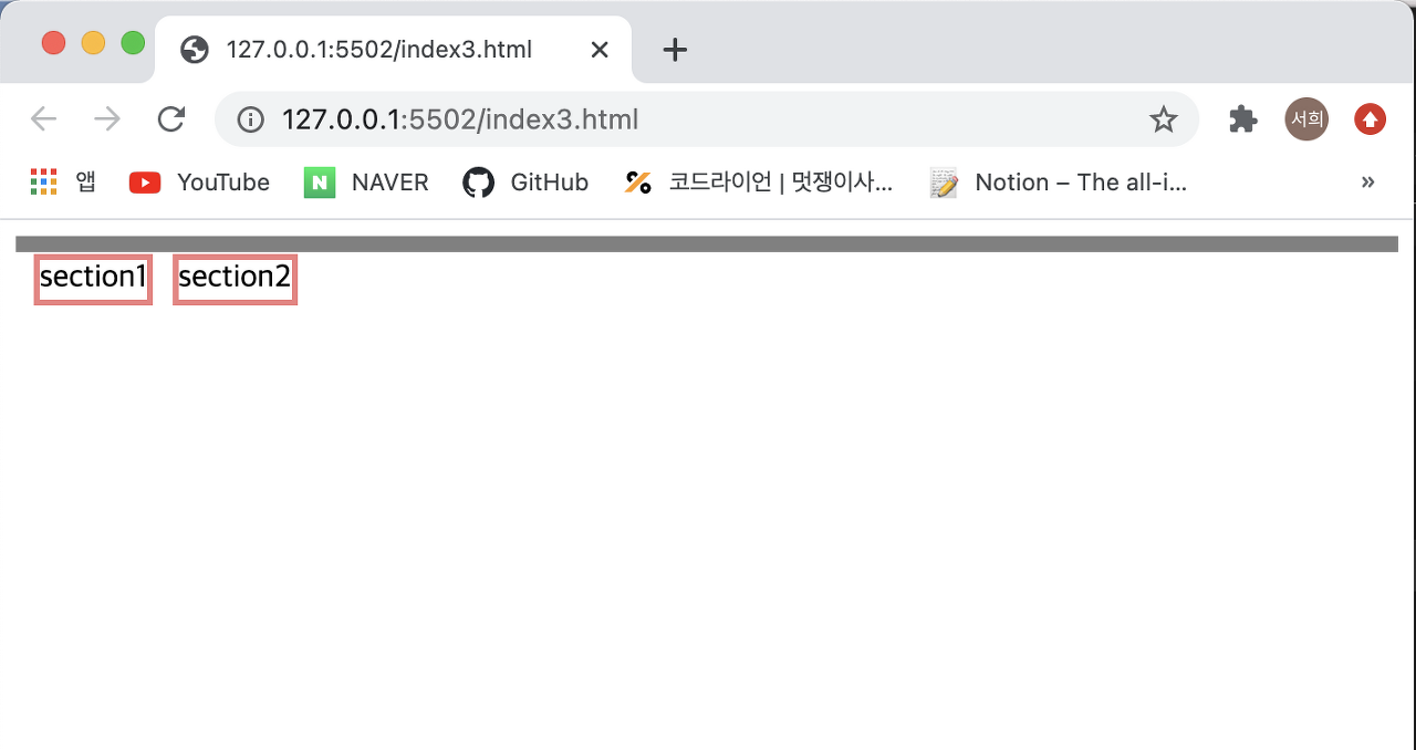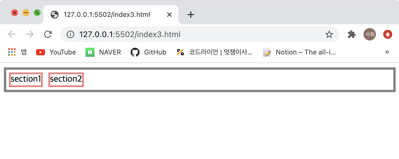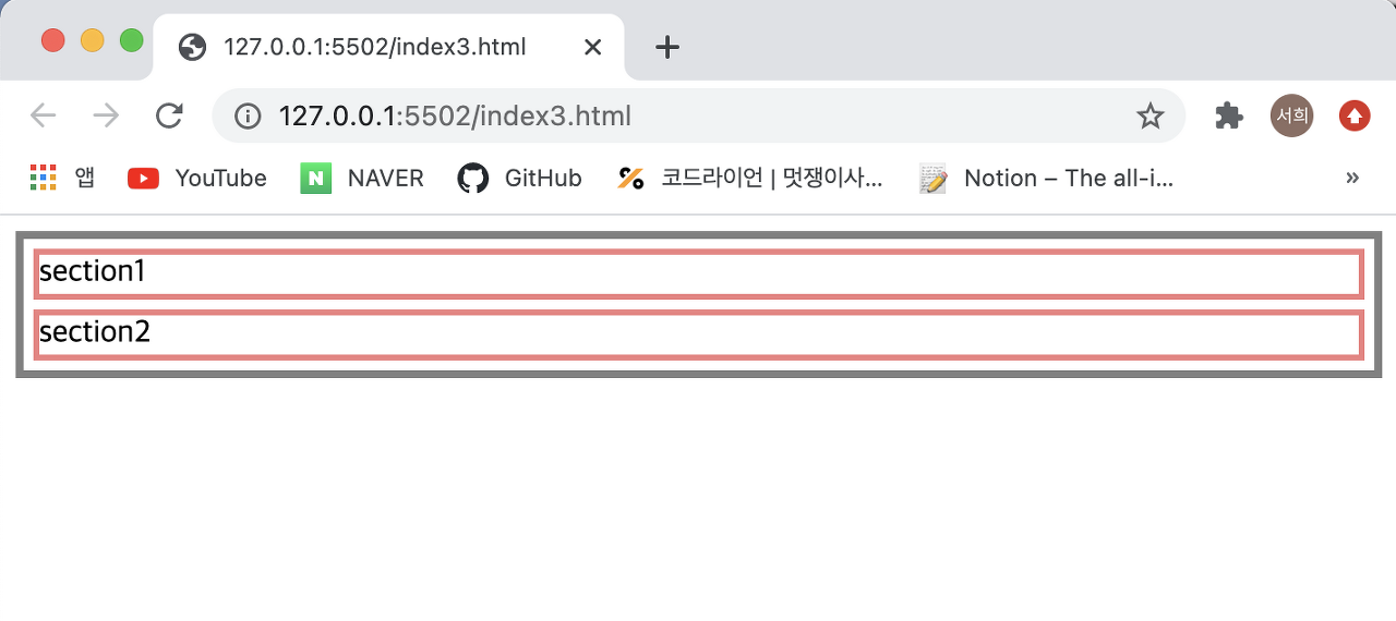 - 우선 float 속성을 넣지 않았을 때는 정상적으로 부모가 자식의 높이를 반영해서 설정된 것을 확인할 수 있다.