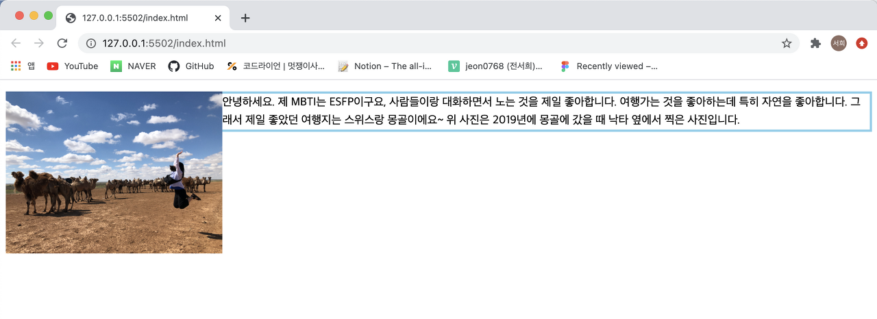 - 만약 사진 바로 옆에 글을 넣고 싶다면?