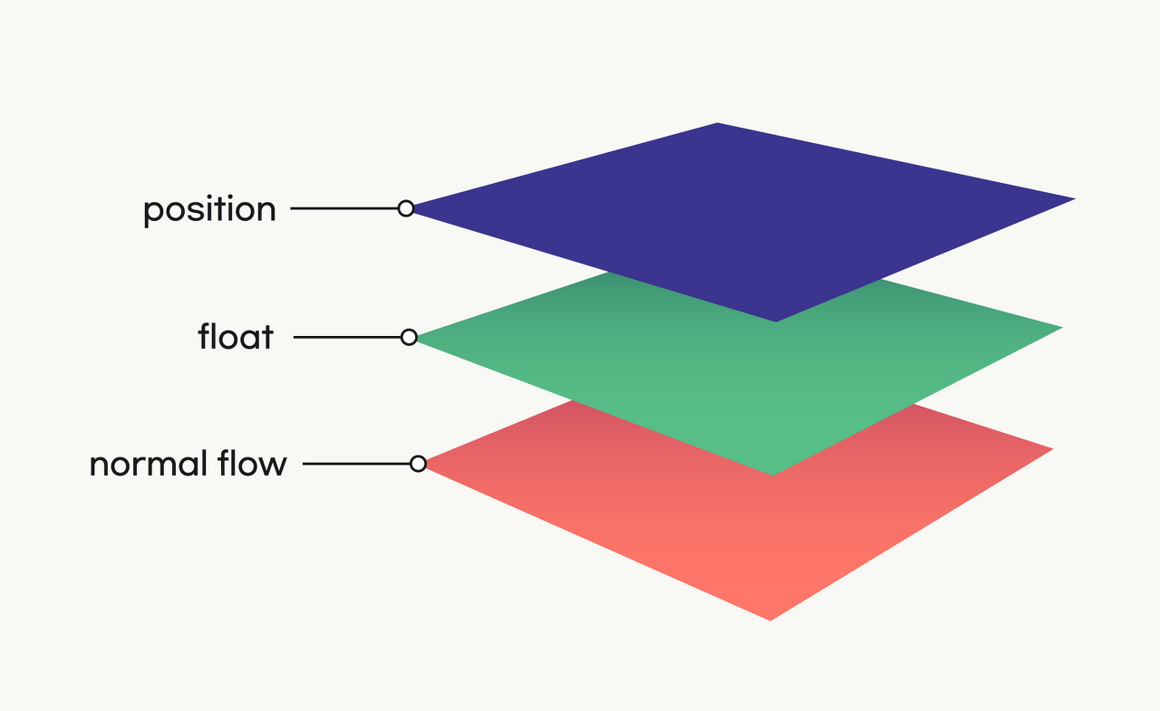 - 브라우저는 요소를 화면에 어떻게 보여줄지 결정하는 여러 방법이 있다. 그 중에서 대표적으로 세가지 방법이 존재하는데 normal flow, float, position이 있다.