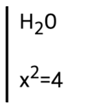 - 화학 기호나 수학공식 등 첨자 기호를 이용해야 하는 곳에서만 사용